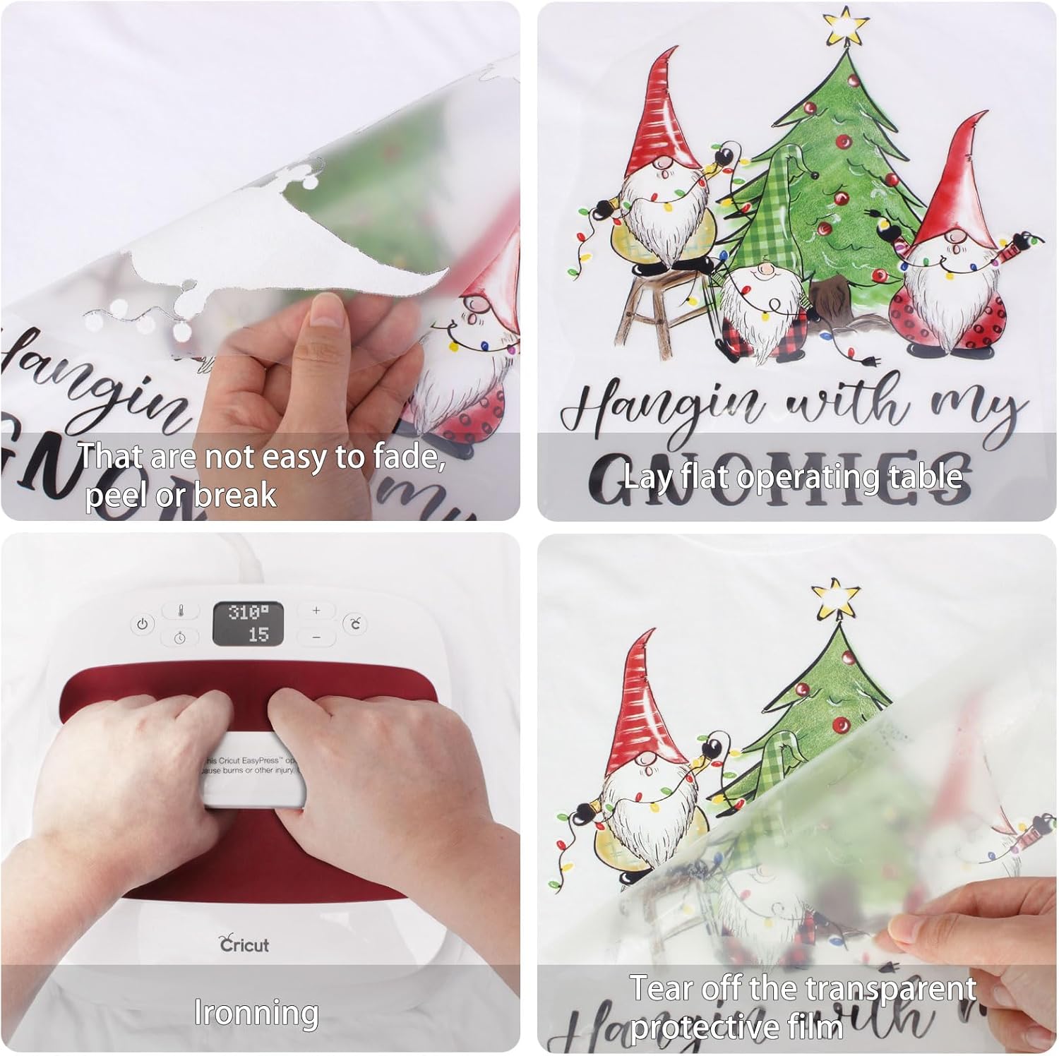 The Christmas iron on transfers are made of high-quality transfer vinyl.they adhere to the fabric seamlessly and will not peel.crack or fade during washing.