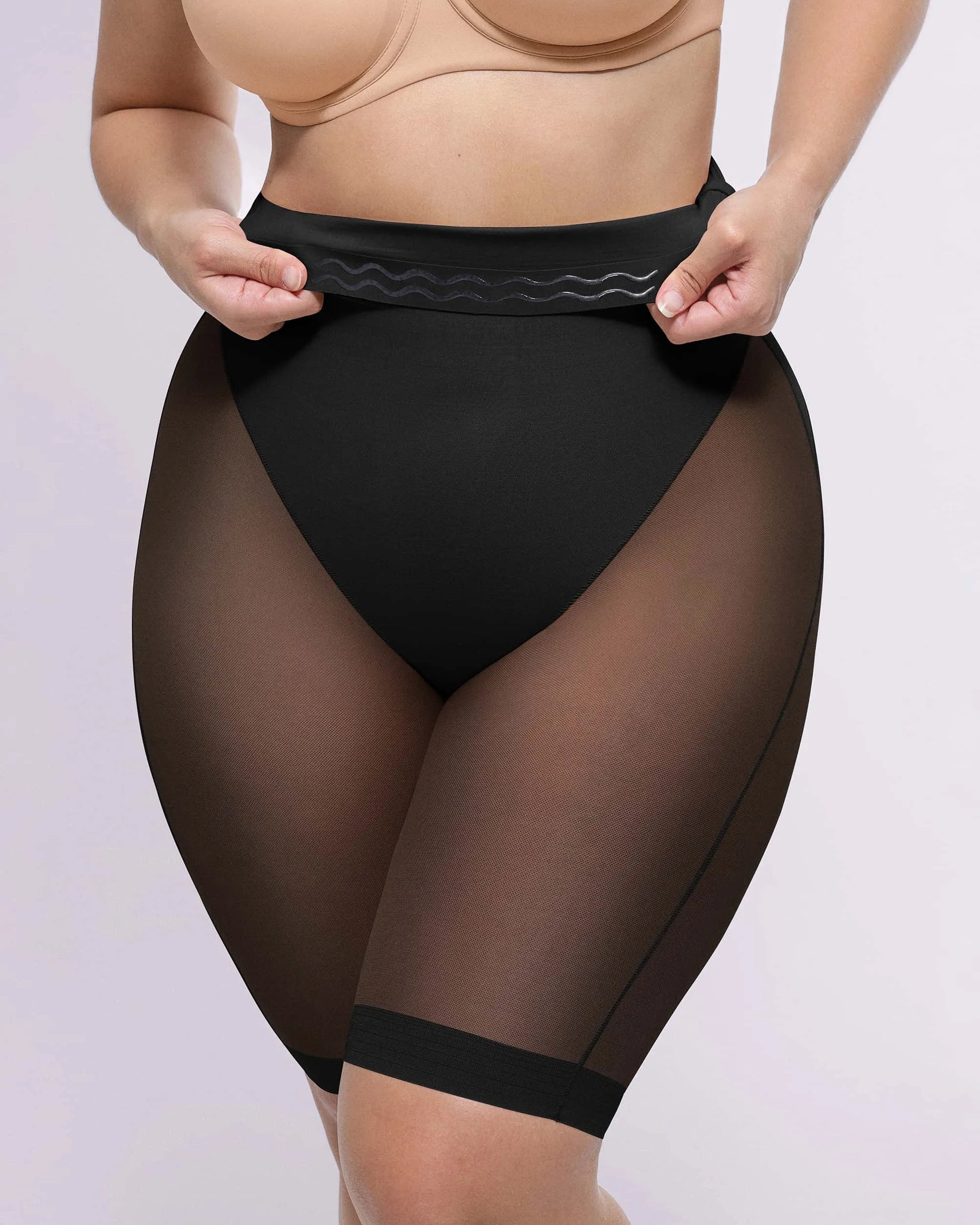 Shape and sculpt effortlessly with Butt-Lifting Above-Knee Short! Lift and define your curves with compression fabric that smooths your tummy. Breathable mesh keeps you cool. while anti-roll boning and non-slip grip lining stay firmly in place—no shifting. no rolling. just all-day support!