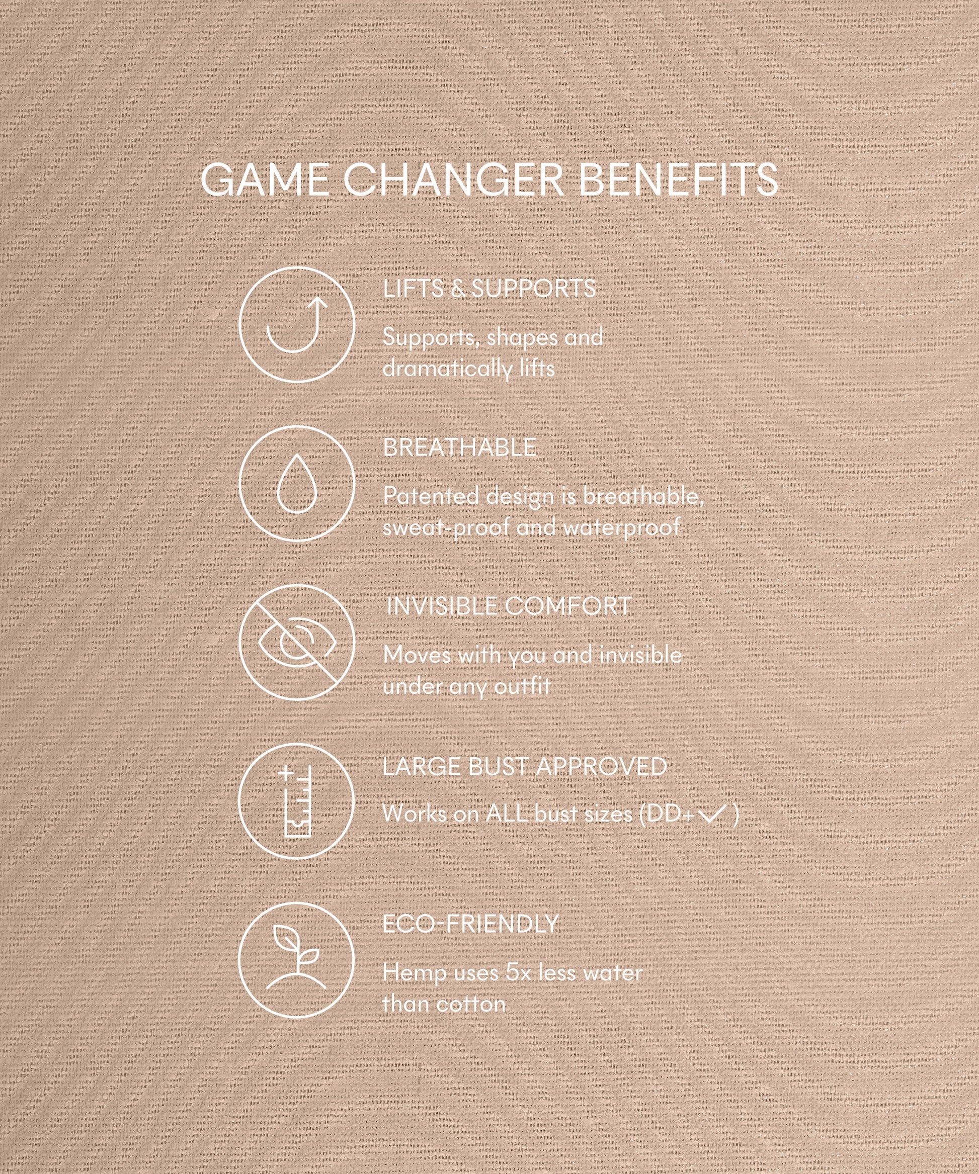 Our best-selling patented ready-to-wear see-through strapless bra offers uplift, shaping and support for all sizes (even DDD/G+). Made from breathable and sustainable cotton fabric, it is sweat and water resistant.