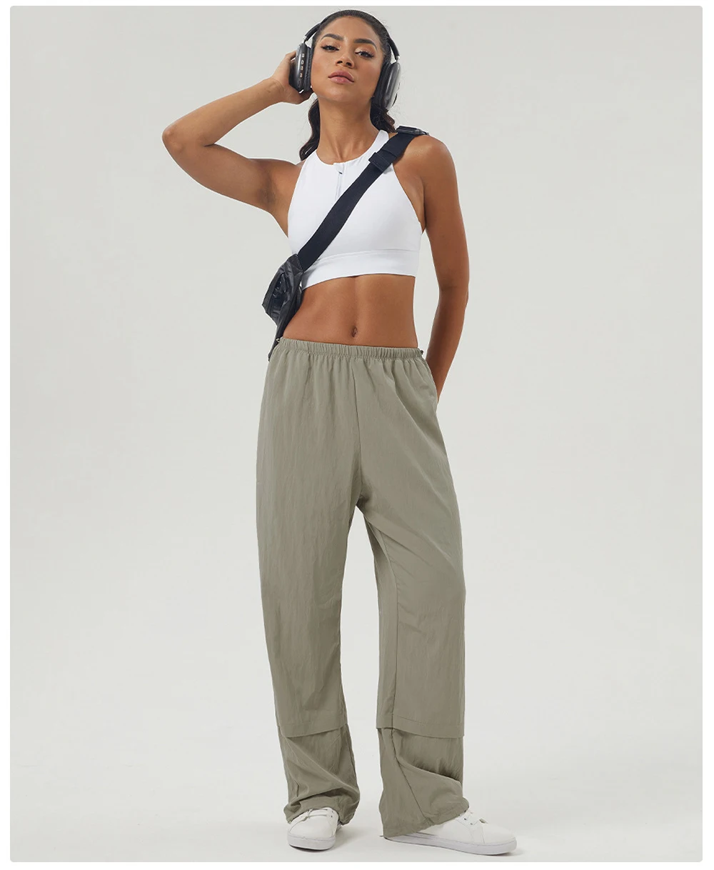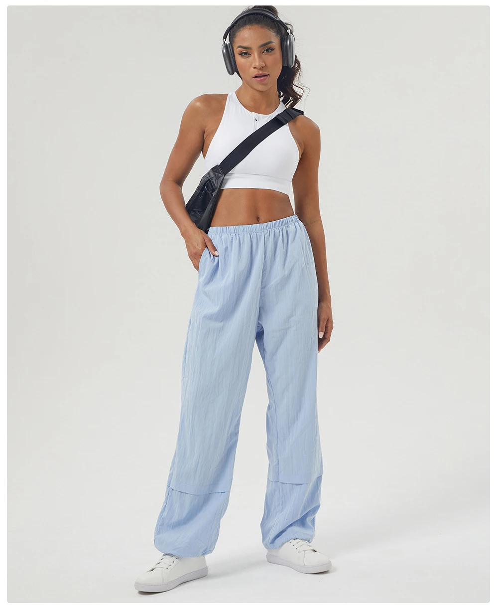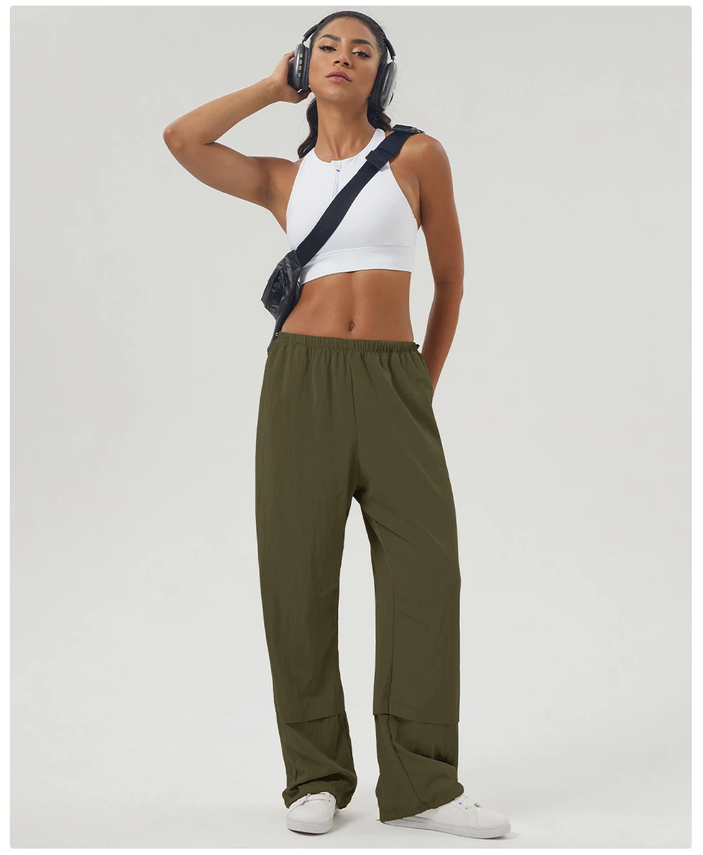 SFRCORD® Women Loose Yoga Pants Solid Color Outdoor Jogger Pants Breathable Quick Dry Pocket Sweatpants Female Running Sportswear